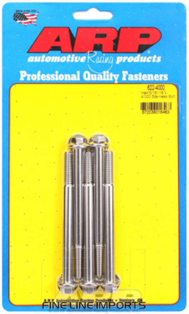 5/16 inch-18 x 4.000 hex SS bolts