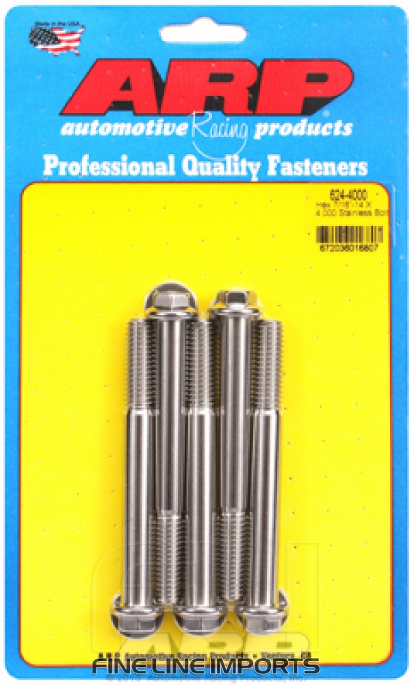 7/16 inch-14 X 4.000 hex 1/2 wrenching SS bolts
