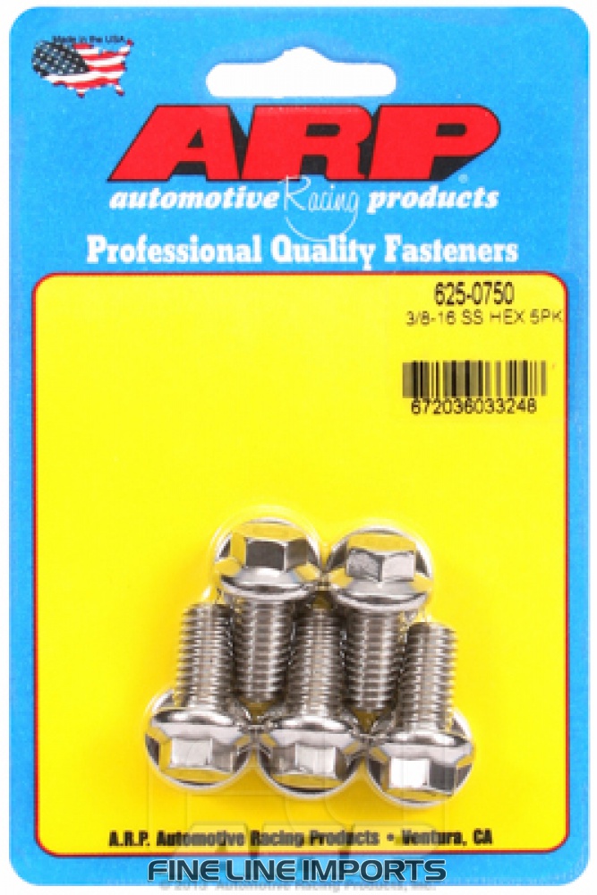 3/8 inch-16 x 0.750 hex 7/16 wrenching SS bolts