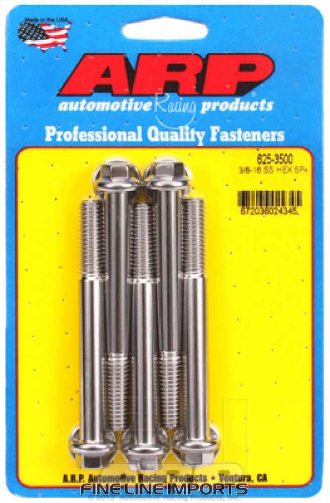 3/8 inch-16 x 3.500 hex 7/16 wrenching SS bolts