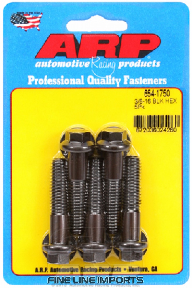 3/8 inch-16 x 1.750 hex 7/16 wrenching black oxide bolts