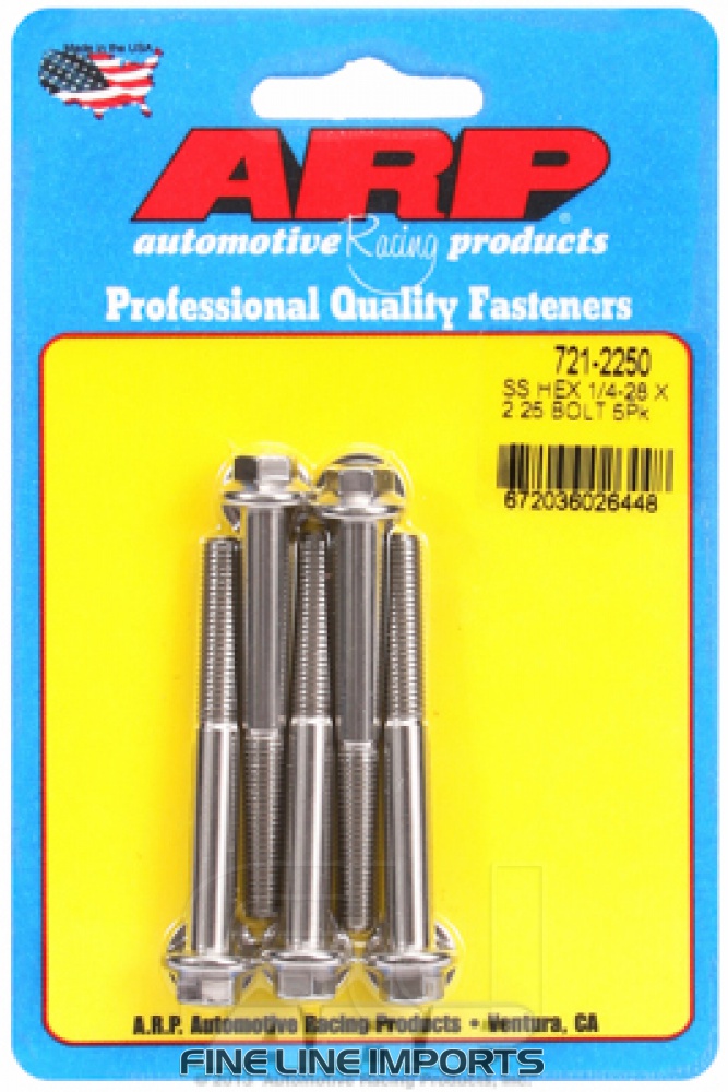 1/4 inch-28 x 2.250 hex SS bolts
