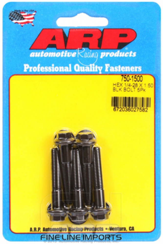 1/4 inch-28 x 1.500 hex black oxide bolts