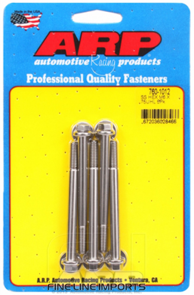 M6 x 1.00 x 75 hex SS bolts