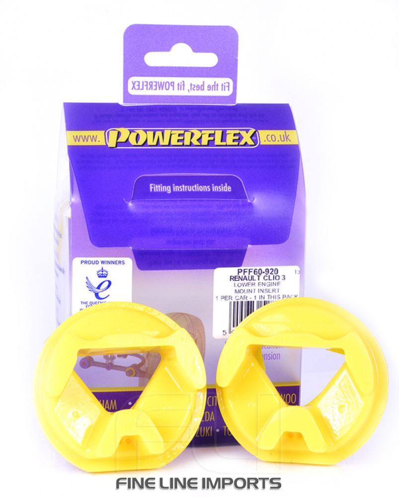 Lower Engine Mount Insert This is an insert that fits into and fills voids in the original rubber bush in lower engine mount. Fits Clio III ,Megane II, Kangoo II and Scenic II 1.5L Diesel models. Also fits 1.6L Petrol Clio III and Kangoo II.