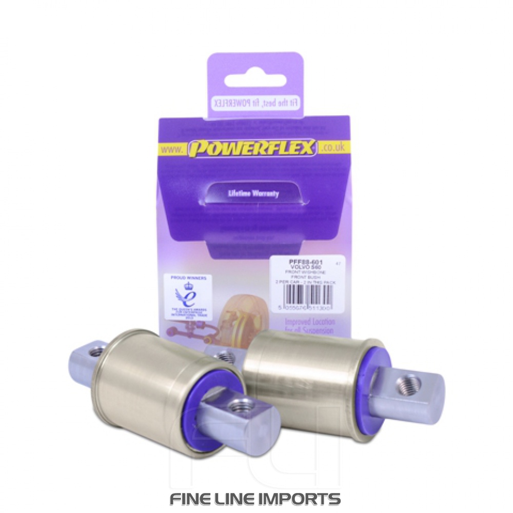 Front Wishbone Front Bush Testing during the development of this new part has proven an increased stiffness of 90% vs. the original rubber bush up to 3mm displacement, whilst also allowing free rotation of the sleeve for improved suspension performance and increased longevity.