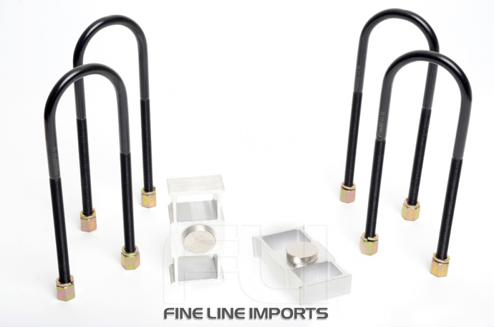 Important Note: Due to shock hitting wheel rim we don't recommend fitting bigger than 25mm (1) Important Note: Block = 25mm, Pin = 32mm, Hole = 35mm, U Bolt = M14x75mm Install Guide: Installation Instructions Kit Contents: 2 Blocks, 4 U-Bolts, 4 Washers, 4 Nuts