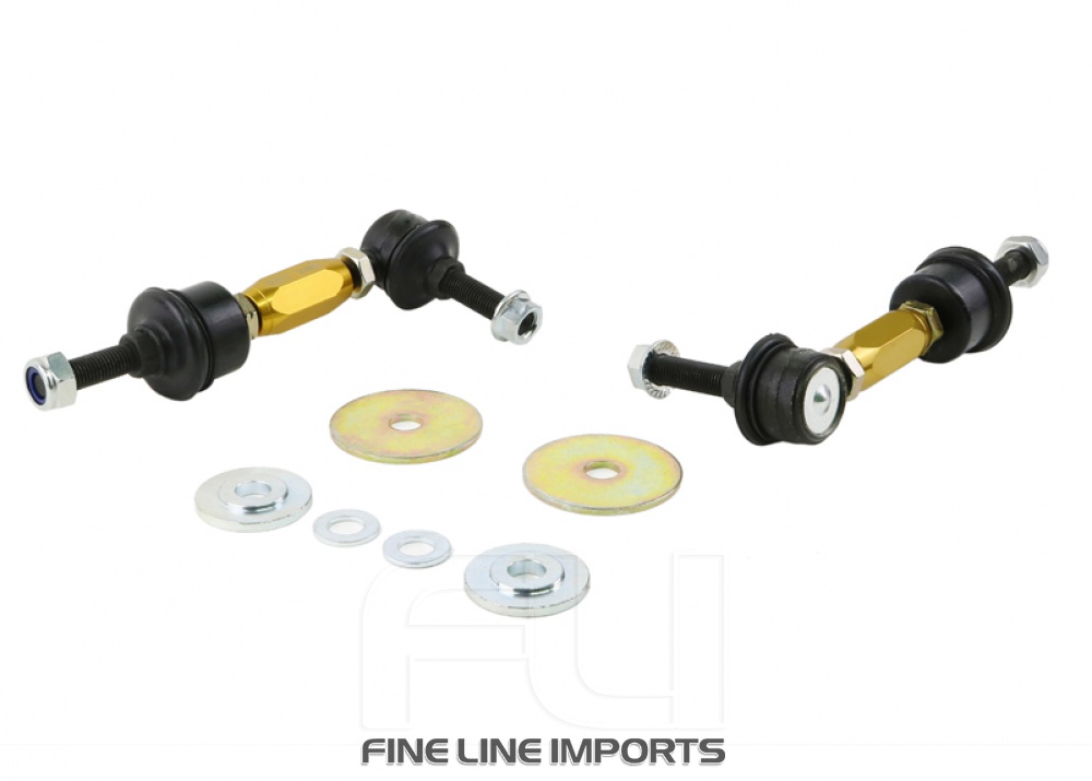 Not many enthusiasts are aware that OEM and more importantly aftermarket sway bar effectiveness can be hindered by worn or inadequate mounts, drop links and lateral stoppers. Whiteline adjustable sway bar links are engineered to be up to the task with top spec, light weight componentry combined with a window of adjustability, eliminating sway bar preload on installation but most importantly ensuring the maximum output of the sway bar for improved grip and better handling.