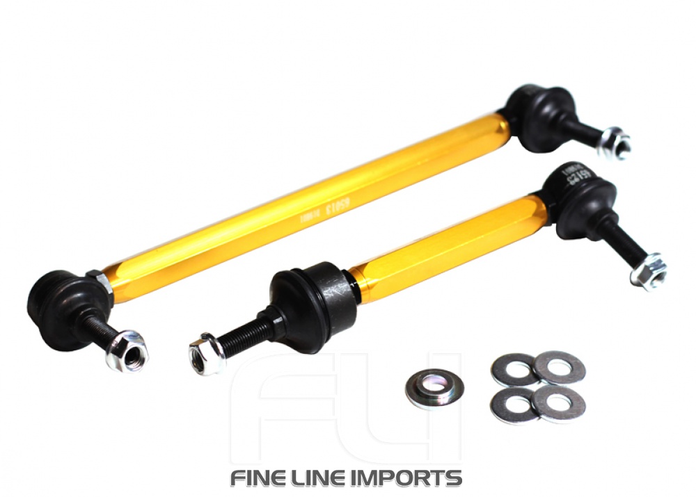 Not many enthusiasts are aware that OEM and more importantly aftermarket sway bar effectiveness can be hindered by worn or inadequate mounts, drop links and lateral stoppers. Whiteline adjustable sway bar links are engineered to be up to the task with top spec, light weight componentry combined with a window of adjustability, eliminating sway bar preload on installation but most importantly ensuring the maximum output of the sway bar for improved grip and better handling.