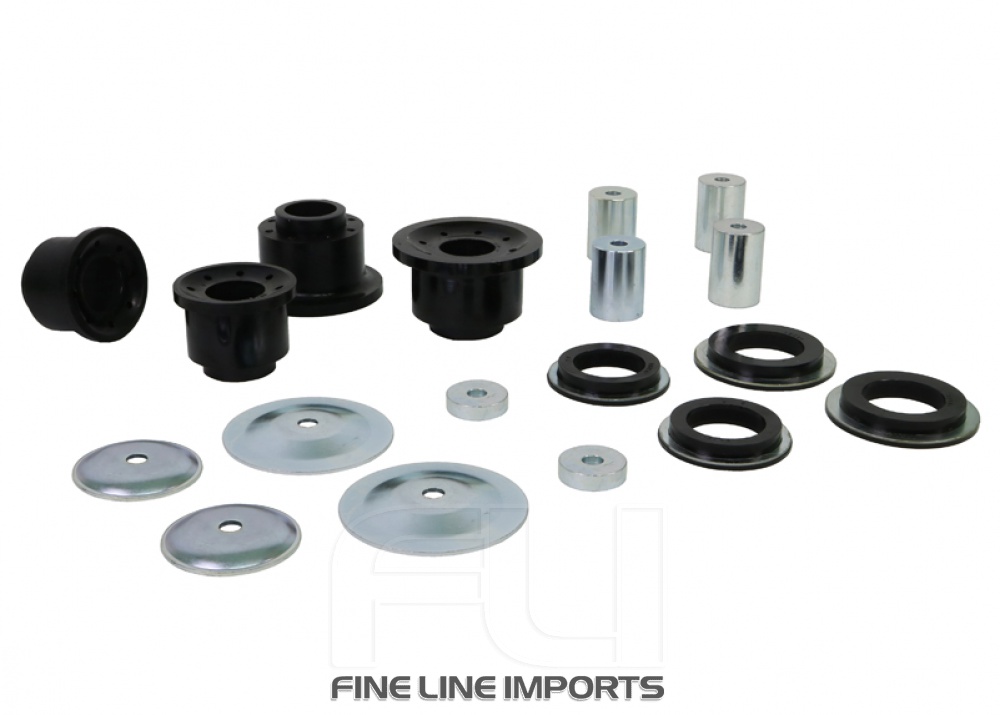 The Whiteline kit replaces the bushings in the rear subframe to dramatically reduce rear cross member misalignment and movement which allows a more positive feel from the rear end during cornering. Recommended for motorsport applications.