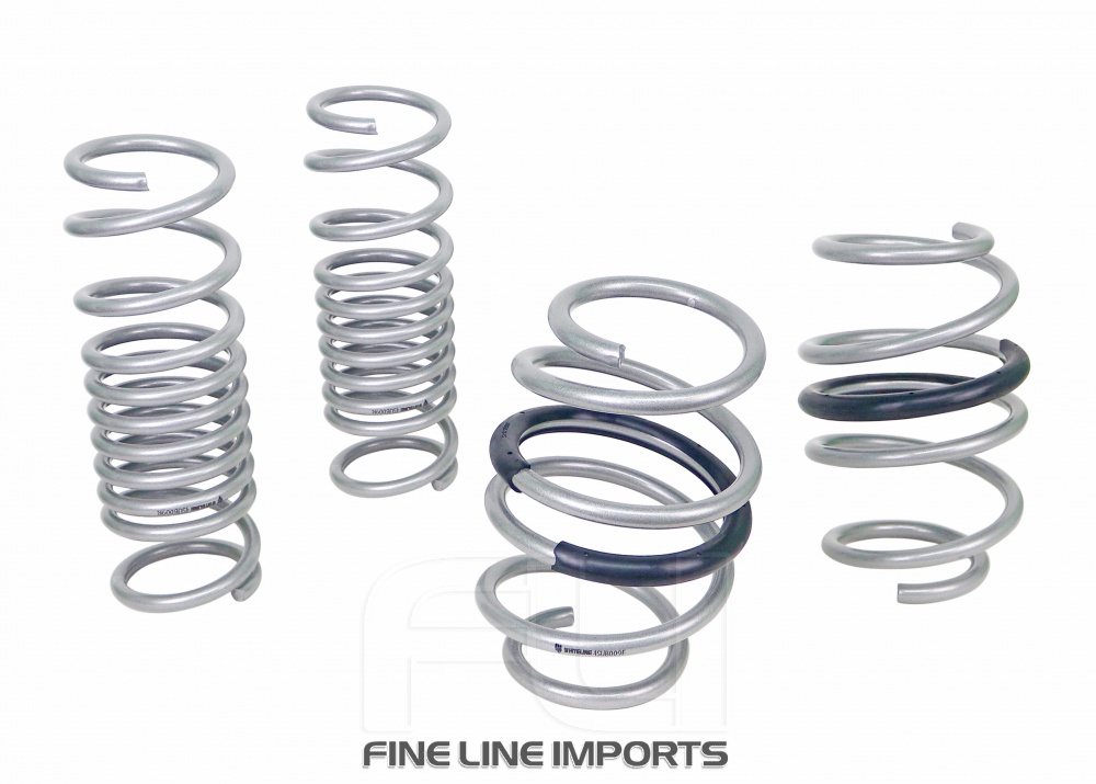 Whiteline Springs deliver improved vehicle performance whilst maintaining safety and ride quality characteristics. This kit contains 4.5kg/mm (253lb/in) front rated springs that provide a 25mm drop while the 5.3kg/mm (300lb/in) rated rears deliver a desirable 25mm to the vehicle. By lowering the vehicles centre of gravity, the unique and progressive rate coil design not only improve performance but enhance overall appearance. Developed and tested in-house at our Australian-based facilities from the highest quality materials, coating and to the finest tolerances guaranteeing exact fitment. Whiteline Springs are engineered for optimal balance with OEM and aftermarket shocks. For total grip activation match with Whiteline Sway Bar and Essentials kit for unrivalled handling and optimal vehicle performance.
