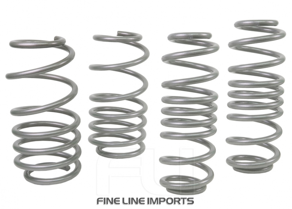 Whiteline Springs deliver improved vehicle performance whilst maintaining safety and ride quality characteristics. This kit contains 4.1kg/mm (229lb/in) front rated springs that provide a 25mm drop while the 3.5kg/mm (134lb/in) rated rears deliver a desirable 20mm to the vehicle. By lowering the vehicles centre of gravity, the unique and progressive rate coil design not only improve performance but enhance overall appearance. Developed and manufactured in Europe from the highest quality materials, coating and to the finest tolerances guaranteeing exact fitment. Whiteline Springs are engineered for optimal balance with OEM and aftermarket shocks. For total grip activation match with Whiteline Sway Bar and Essentials kit for unrivalled handling and optimal vehicle performance.