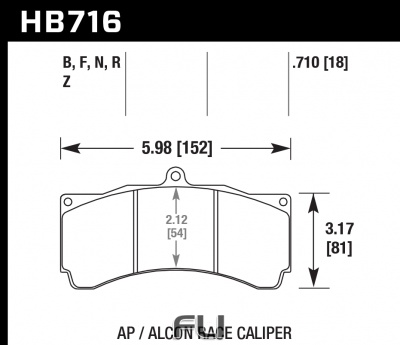 De totale afmetingen van het remblok zijn: