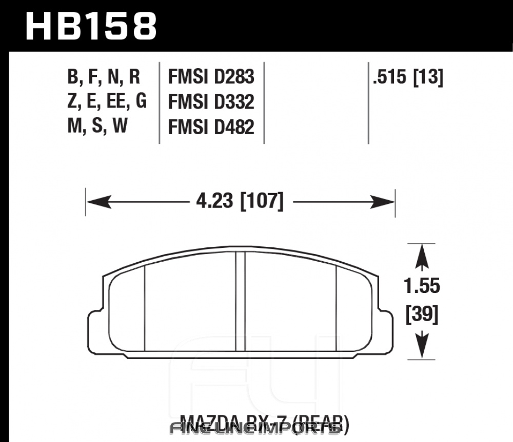 MAZDARX7 (FD1)2,6 (Twin Turbo 1.3 Rotary)1991-1997Rear (Akebono)ER-1HB158D.515