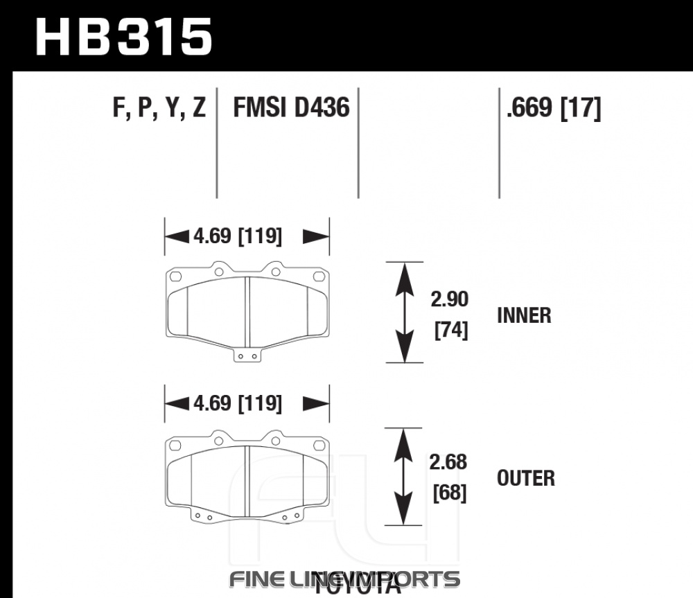 TOYOTA (Australia and New Zealand)Prado (KZJ90/5)All1996-2003FrontHPS 5.0HB315B.669