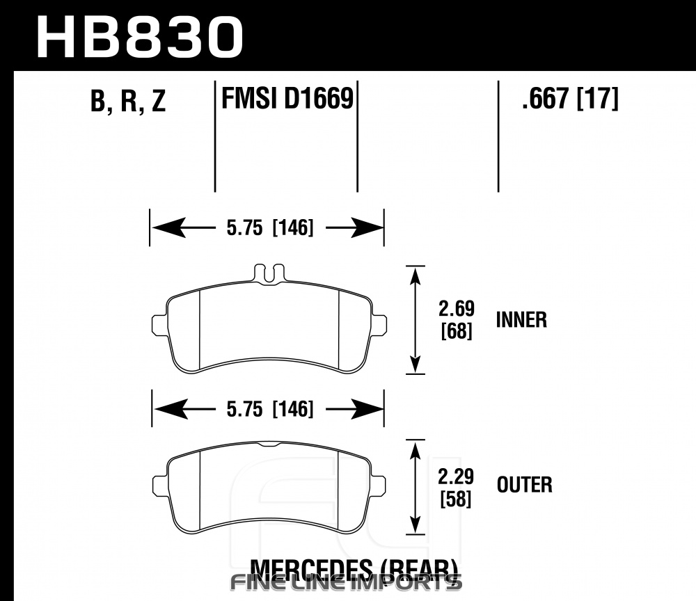 MERCEDES-BENZC-Class (W205) (C63 S AMG) (510PK) Trapezoid pad weights2014-2021Rear (TRW)Performance CeramicHB830Z.667