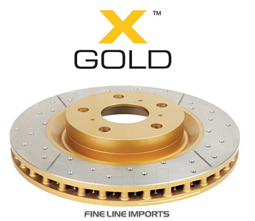 X Gold brake rotors combine the reliability of our Street Series with a superior non-directional cross-drilled and slotted design, featuring an eye-catching gold finish on the rotor hub.